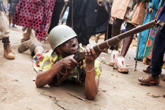 As fotos de domingo não revelam uma curiosidade. Para cada uma delas, como a do rapaz acima, uma outra com nós mesmos, o fotógrafo, os “brancos”, foi “cobrada” pelos guerreiros Bamoun. Assim, nos juntávamos para concorridas sessões de fotos de família, celebração da paz na guerra. “Eu posso também te filmar?”, me diziam.
