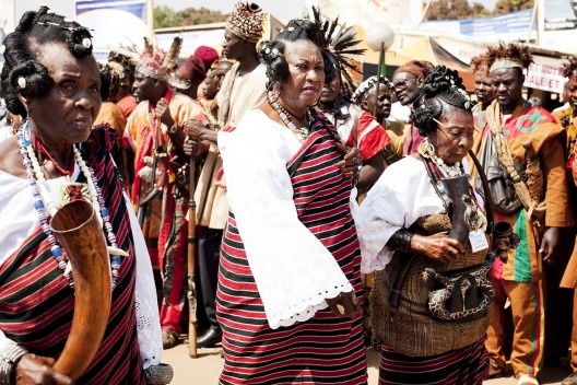 Na frente do Rei, as antigas dinastias passam em procissão. Contam-se 19, com suas inúmeras mulheres e princesas. Há também guerreiros e notáveis, vice-reis e espíritos, que vagam pela festa. Diz-se que um importante rei do século XX, Ibrahim Njoya, se converteu ao cristianismo e em seguida ao islã, antes de fundar a própria religião, o Nwotkweta. Dele há uma frase de efeito: a proibição da poligamia pelo cristianismo e do álcool pelo islã são restrições muito duras para o homem.