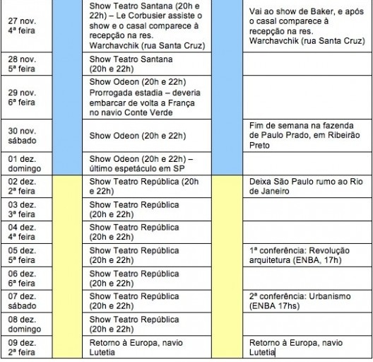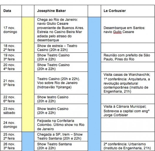 Cronologia da estadia de Josephine Baker e Le Corbusier no Brasil, 1929