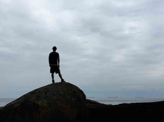 O mais jovem sobe na enorme pedra e contempla a paisagem que finalmente se descortina sem obstáculos. O casario pacato diante do mar calmo é emoldurado por árvores altas, algumas com flores coloridas. A última construção da fila parece casa de fazenda, daquelas pequenas e simples, de quem trabalha na lavoura. Dela sai uma velha, moradora de meio século no lugar, gaúcha, quem sabe ex-hippie, e traz nas mãos cartão com telefone divulgando os quartos para locação. Ela informa que não é possível seguir; o retorno é inevitável, equívoco normal de quem arrisca caminhos desconhecidos.
