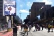 Um dos cartuns da série desenhada pela Laerte, afixados nos postes do canteiro central da Avenida Paulista, fica menos engraçado quando a vida real se demonstra mais grotesca do que seu humor negro.