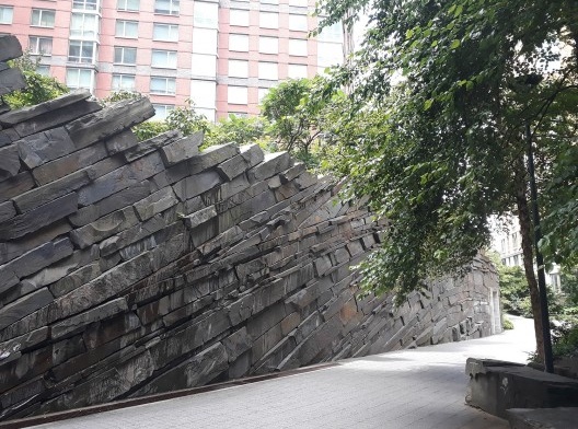 Em seu cenário acinzentado, Manhattan possui “pérolas verdes” espalhadas em seu território, seja em grande escala, como o conhecido Central Park, como em pequena escala, chamados de “pocket parks”, ou parques de bolso, localizados em pequenos lotes cercados por altos edifícios, como o Greenacre Park, o Paley Park, o 1886 Broadway, entre tantos outros. Os habitantes de New York possuem uma rotina acelerada e esses espaços são fundamentais para descanso e convívio social, normalmente utilizados em horários de almoço e intervalos do trabalho.