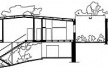 Fotografias, tiradas logo depois da construção da Casa de Vidro, mostram um disco voador brilhante, pousado em uma colina. "Pernas" muito finas sustentam o equilíbrio. Uma escada frágil de ferro é deixada como uma descida do tombadilho para a terra. Uma abertura no meio da nave poupa uma árvore que está recoberta de plantas e flores.