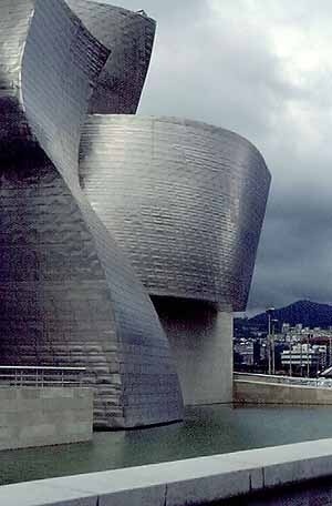 Em Bilbao, ainda que tetos e paredes deslocadas se curvem e se mesclem numa fusão evidenciada pelo material único que os reveste, as formas não são exclusivamente abstratas nem destituídas do seu significado arquitetônico – janelas ainda são janelas, em certos pontos espelhando a fenestração dos edifícios vizinhos; o pára-sol diante do pano de vidro que permite vislumbrar o rio, por mais inusitada que seja sua figura, ainda faz reconhecer seu papel.