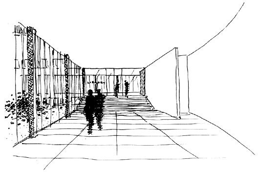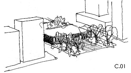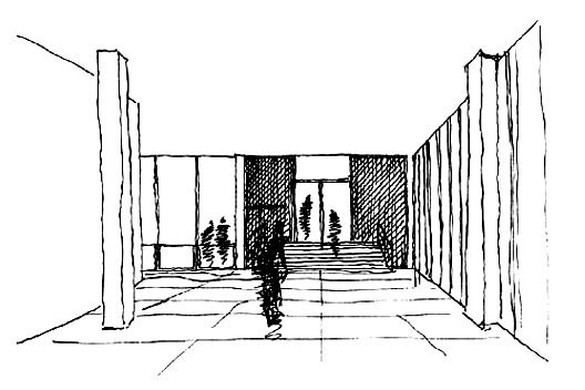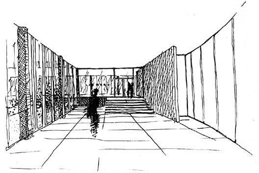 Estes muros poderiam ser uma nova interpretação e adaptação do projeto para o Teatro Nacional Mannheim (1952-1953) reservando-se, logicamente, as diferenças de escala e função que distanciam os dois projetos. Talvez o croqui C.07 representasse melhor esta comparação com o projeto para Mannheim. Ainda que a parte saliente dos muros não exista, agora a parte opaca vai desde o solo até a laje, acedendo-se diretamente às plantas inferiores pelo mesmo nível de onde partem os muros.