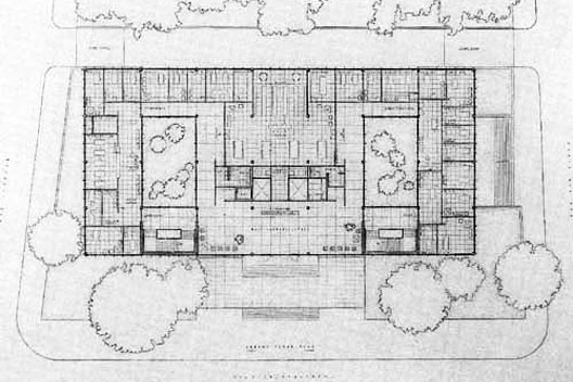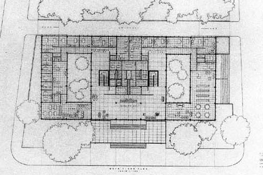 No volume 17 do Arquivo Garland Mies van der Rohe do Museu de Arte Moderna de Nova York (3), estão publicados uma série de croquis, anotações e documentos técnicos, referentes ao projeto de 1957 de Mies van der Rohe para o consulado dos Estados Unidos em São Paulo. Este projeto, por razões ainda desconhecidas, não foi construído, mas na relação de documentos pesquisados estão apresentadas plantas executivas, o que indica que o projeto chegou a etapas de finalização já em 1960 (figura 1).