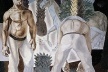 A figura da mulher constituía outro tema manipulado pelos regimes ditatoriais. Sua significação embasava-se na beleza e saúde física do estereótipo que permitisse manter unida a família gestando filhos para preservar a raça branca (58). No entanto, no Rio de Janeiro hedonista, a visão da mulher estava mais próxima das mulatas de Di Cavalcanti e do conceito de sociedade mestiça de Gilberto Freyre e Mario de Andrade. De início, Capanema desejava resgatar uma visão da figura feminina através da imagem da justiça salomônica e solicitou que Portinari pintasse a famosa disputa entre duas mulheres. No entanto, prevaleceu a temática local e popular: além de constituir um tema reiterado da época, o erotismo feminino esteve presente nos desenhos de mulatas nos morros da cidade, reproduzidos nos croquis de Le Corbusier, e nos realizados por Oscar Niemeyer e Carlos Leão, os arquitetos boêmios do MES (59).