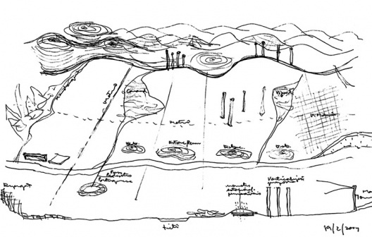 Se a geografia se configura como vetor nas grandes escalas, no caso da área em questão parecia invisível. A idéia, portanto era torná-la visível. Acho sempre que o melhor exercício da cidadania se dá – do ponto de vista da arquitetura – quando associamos infra estrutura e geografia; isto é, a apreensão visível da cidade.
