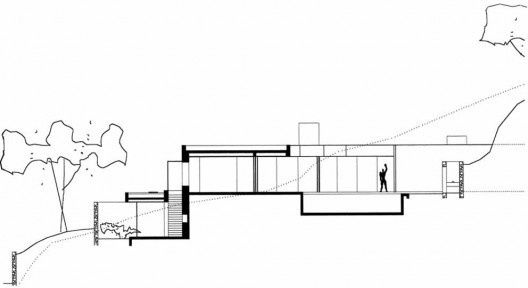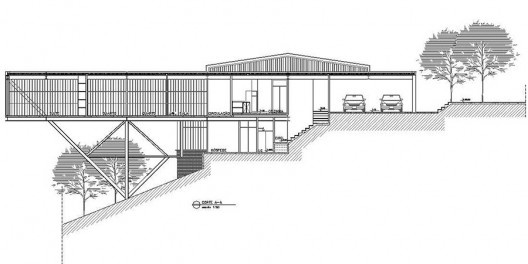 A casa foi construída em meio à densa vegetação em terreno de 9 mil m² com acentuado declive no sentido da ampla vista voltada para a cidade. Dois corpos articulados por um pátio interno, uma rampa e uma passarela foram implantados tipicamente a meia encosta. O primeiro corpo foi assentado diretamente no solo e abriga garagem, dormitório de empregada, serviço e o acesso principal. O segundo flutua sobre o terreno e apóia-se diretamente sobre pilotis: evitando arrimos e cortes desnecessários. Neste segundo corpo, foi arranjado o restante do programa, bastante enxuto composto por cozinha, dormitório, estúdio, estar e um terraço , um nível abaixo, acessado por uma escada que sai junto ao jardim interno.