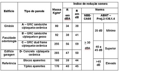 O tratamento acústico dos edifícios é de grande complexidade e compreende o isolamento acústico proporcionado pelas vedações e o condicionamento acústico dos ambientes. Através do isolamento acústico procura-se evitar a penetração ou a saída de sons aéreos e sons de impacto em um determinado ambiente. O isolamento acústico de uma vedação, não é igual para todas as freqüências, sendo que para cada uma pode-se determinar o isolamento acústico de cada tipo de vedação, mostrados na tabela 2. Os valores aqui apresentados foram calculados por meio da massa de cada vedação e referem-se a uma média do isolamento acústico. A tabela a seguir mostra o isolamento acústico proporcionado pelas vedações apresentadas no item anterior.