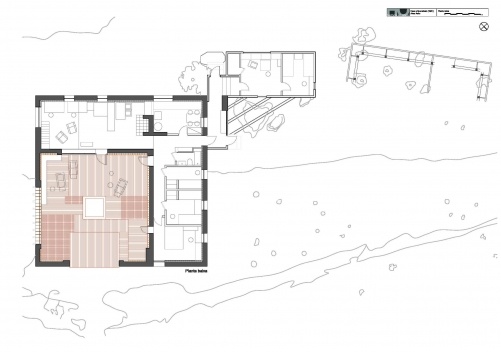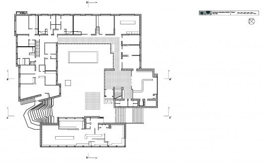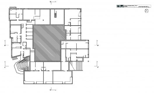 Ese aspecto es alcanzado no sólo por la singularidad formal del tejado. Al situar la “torre” en la extremidad de la planta en “U”, justamente en el punto donde está localizada la escalera de acceso, se consigue la máxima altura posible al conjunto y en el lugar de mayor visibilidad. Altura, localización y forma que reivindican la importancia del uso de esta parte del conjunto, donde son tomadas las decisiones, otorgan el simbolismo necesario que implica tal función por medio de la monumentalidad.Del umbral al salón