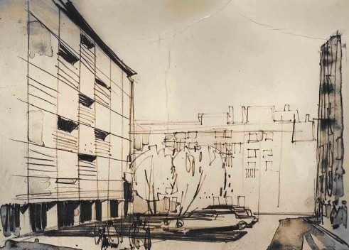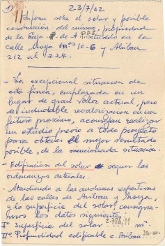 Propuesta de rectificación de tramos entre la calle Aribau, Mayá y Tuset. Arquitectos Francisco Ribas Barangé y José Luis Cia (Felipe). Archivo de Francisco Ribas Brangé.