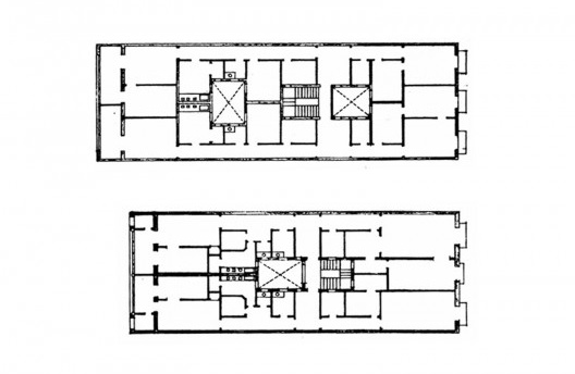 La característica fundamental de los edificios construidos en la manzana propuesta por Cerdà a lo largo del siglo XX es la presencia de la crujía que limita a plantas de dos a seis huecos en sus dos únicas fachadas –hacia la calle y hacia el interior de la manzana. Esta descripción, alterada en las esquinas por el chaflán, condicionó la organización de estas plantas -generalmente estrechas y largas- a la inevitable presencia de los patios de iluminación y ventilación y, sobre todo, largos pasillos que conectaban a los espacios que daban a la fachada de la calle –normalmente las estancias más importantes– a los que miraban hacia el patio interior intermediados por las galerías. Las fachadas de 9 a 13 metros son un ejemplo clásico de fachadas con tres huecos, en que los patios y núcleos de servicios se concentraban en el eje interior, mientras el pasillo era desplazado hacia las medianeras.