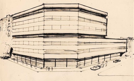 Ribas y Cia prepararon un dibujo en perspectiva siguiendo la ordenanza municipal vigente. A través de él no parecían querer comprobar la ineficacia de lo impuesto por la ordenanza, sino demostrar un intento de solución posible caso la propuesta de rectificación fallara. El dibujo enseñaba a un proyecto plano, sin volúmenes sobresalientes, que ocupaba toda el área posible. Sin embargo, la diferencia de altura permitida –más alto en la calle Aribau– debido a la anchura de la calle, parece haber generado la estratificación horizontal que se ve por medio del dibujo. Ésto, en el caso de que hubiese sido construido, lo diferenciaría de otra propuesta semejante ulterior proyectada por los dos arquitectos, la sede de la empresa constructora de la familia Ribas, la Ribas y Pradell.