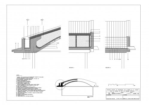 Las manifestaciones externas más notables del paso del tiempo eran la corrosión de las partes metálicas sometido al clima marino y a la condensación, el natural envejecimiento de los estucos, yesos y pinturas, todo ello sumado a reparaciones deficientes. Para indagar sobre las causas, nos resultó útil no sólo estudiar más a fondo la casa sino también repasar la evolución de la arquitectura de Bonet, en la que verificamos algunas preocupaciones constantes, concernientes a las características técnicas de la bóveda y al de la modulación. Podría trazarse una línea “genealógica” a lo largo de la cual se distribuyen y entretejen temas presentes en las Cuatro casas en Martínez (1942), la Casa Berlingieri (1947), el pabellón Berlingieri (1951), y finalmente las Casas Oks y la Ricarda, cuya forma definitiva nace alrededor de 1953. En ese proceso, la sección había evolucionado desde una bóveda simple de hormigón a una doble bóveda compuesta por una hoja de hormigón aligerado con ladrillos y una segunda bóveda no estructural que cierra una cámara aislante y resuelve la evacuación de aguas. La Ricarda aparece, así, como la última versión de la serie sintetizando la doble bóveda con cámara de aire sobre un módulo cuadrado uniendo estructura y forma. Desde el punto de vista del apoyo de la bóveda, los muros continuos de apoyo de los primeros casos evolucionan hasta la utilización de una estructura de vigas de hormigón, columnas y pilares metálicos que liberan por completo la planta. En esta serie de consideraciones históricas, es donde realmente empieza el proyecto de restauración.
