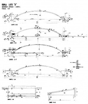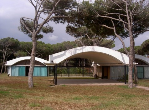 En relación a este tema me gustaría enseñar nuestra intervención en la Casa La Ricarda, una casa de fin de semana construída en un bosque de pinos situado a la orilla del mar, en los alrededores de Barcelona, entre 1956 y 1963. Su autor, Antonio Bonet se formó en Barcelona durante la época de la República, participó en el GATCPAC, colaboró con Sert en el Pabellón de la República española en Paris, y en 1937, se exilió en Buenos Aires y allí vivió hasta su regreso a España en los años 60. El proyecto de la casa La Ricarda, se inició después de un primero contacto con la familia Gomis Bertrand en Barcelona, ciudad a la que Bonet regresó por primera vez en 1949; pero el proyecto definitivo es de 1953. Este consiste en una casa de unos 900 m2 resuelta en planta baja, cuya característica principal es la repetición de una serie de bóvedas de 8.80 x 8.80 en planta, apoyadas sobre pilares metálicos.