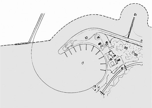 Registrada a inconveniência de esgotos e postos de abastecimento na ponta da enseada – recomendação que, anos depois, seria desconsiderada (3) – e de qualquer construção na ponta da enseada, passemos à forma que demandou tantos estudos, pois sua configuração tem uma função plástica e simbólica essencial no projeto urbano-paisagístico.