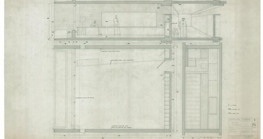 Los cortes del local de Maspons también trasmiten la persistencia de la búsqueda del espacio en doble altura, con luces cenitales iluminando la mezzanine en el final de la perspectiva.