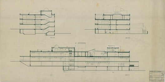 El dibujo se hace menos ideológico, aunque las experiencias parisinas retornan persistentemente. La comparación entre los cortes fugados del aula del La Mennais y el pasillo para el secretariado de Chandigarh es reveladora. Parece una repetición metódica de algo ya hecho antes. Más que una copia, un recuerdo personal.
