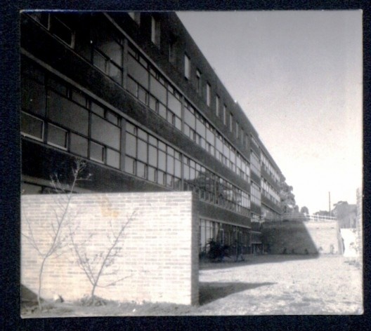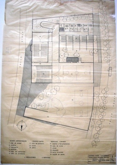 La fachada oeste será la principal en todas las versiones del proyecto. El parque, el lugar del que apropiarse, donde niños, padres y maestros tendrían su espacio natural de encuentro fuera del recinto escolar. Así fue diseñada y así fue construida, y hasta el día de hoy es testigo callado de lo que pudo haber sido.