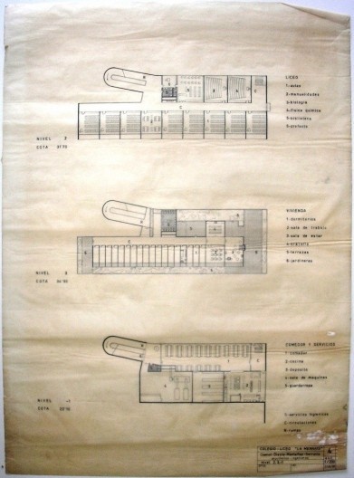 De 1970 son los planos de la escalinata exterior que desciende de la calle Otelo al gran patio. Parece como si en última instancia se ha comprendido que el edificio está atravesado por un conjunto de flujos que es imposible –o no deseable- controlar: termina por tener tres entradas distintas, integrando los espacios exteriores.