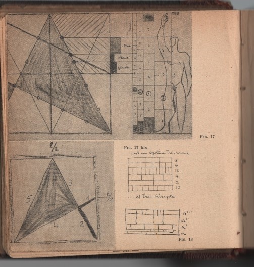 En el plano compositivo, descubrimientos personales a la sombra de las publicaciones sobre el número de oro, fundamentalmente las de Matila Ghyka(13) (aunque se reserva la novedad para sí, por el capítulo Los trazados reguladores de L’Esprit Nouveau). Choisy es invocado, también.
