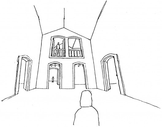 Já no primeiro contato com a ruína, impressionou-nos fortemente o espaço interno reunificado com a destruição dos pisos que o compartimentavam e o impacto das imensas paredes de empena, quase sem aberturas, lisas, parcialmente descascadas, veículo e mudo testemunho da unificação espacial conseguida.