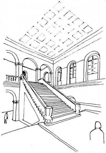 Guardadas as proporções e feita outra ressalva quanto ao tratamento acadêmico que lhe foi dado, nela vemos ressonâncias da escadaria Escurial de Herrera e Toledo ou da escadaria do Palácio Real de Caserta de Vanvitelli, modelos que encontram inspiração nos desenhos de Di Giorgio, de Da Vinci, ou no excepcional átrio da Biblioteca Laurenciana, de Michelângelo.