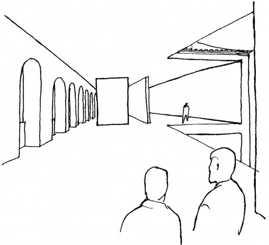 Em relação à arquitetura moderna, não precisamos ir muito longe. Aqui perto, no Cassino da Pampulha, utilizando vazios estruturais, suaves rampas de acesso, paredes de vidro e superfícies espelhadas consegue-se a sensação de espaço unitário, contínuo, fugidio, imenso. Do mesmo arquiteto, destacamos o extraordinário projeto do Museu de Arte Moderna de Caracas. É curioso verificar que, neste projeto, a sensação de espaço fugidio, de construção “desmaterializada” não é conseguida com o uso já consagrado das paredes de vidro, mas pela eliminação dos tradicionais elementos de suporte (colunas por tirantes), o uso da luz natural (sheds reguláveis) e, principalmente, pelo uso da luz artificial lançada de ricochete sobre as paredes perimetrais, já inclinadas, para “dissolvê-las” visualmente. Neste projeto obtém-se a reunificação de todo espaço construído pela integração vertical dos espaços superpostos através dos vazios existentes nas lajes e, paralelamente, consegue-se o superdimensionamento psicológico do mesmo pelo confronto de escalas, isto é, pela brusca transição de uma entrada “estrangulada” para a totalidade do espaço construído.