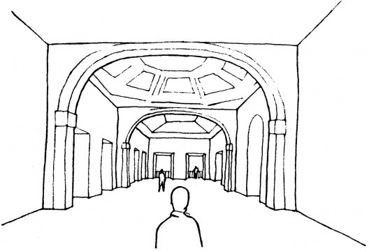Já no século XVIII, esse saguão começa a ampliar-se e sofisticar-se. Já pretende subordinar toda edificação ao seu novo status.