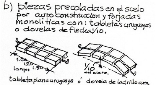 La cerámica armada (12) como la llama Eladio Dieste (13), consiste en una pieza prefabricada monolítica, que combina el ladrillo, el acero y el hormigón, conformando una pieza única que trabaja como una unidad estructural sólida. Con la adaptación de este sistema constructivo en viviendas de autoconstrucción, Carlos González Lobo consiguió el ahorro en material, ya que las cantidades de acero y hormigón son menores en comparación al empleo de una estructura similar de hormigón o de otro material comúnmente utilizado. Reducir el precio de la cubierta manteniendo su mayor volumen y su mayor resistencia.