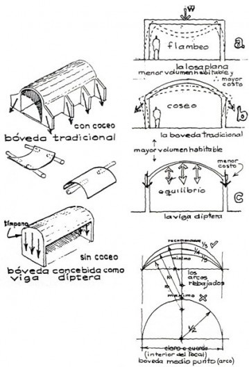 Fue entonces que Carlos González Lobo consolidó un sistema constructivo de bóvedas de hormigón armado, liberándolas del problema del coceo lateral por el empuje mismo de la bóveda.