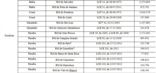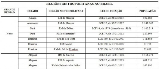 Assim, o Brasil inicia a segunda década do século XXI concentrando mais de 51% de sua população em 50 (cinquenta) áreas metropolitanas, conforme acusa a tabela a seguir.