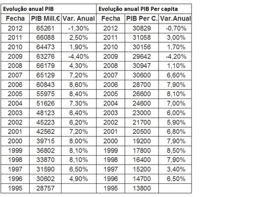 Evolução anual PIB País Basco / Evolução anual PIB per capita País Basco. Fonte: http://www.dadosmacro.com
