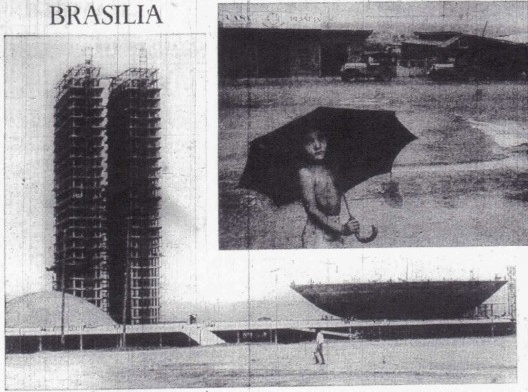 When Brasília was launched, on 21st of April 1960, four British journals covered its inauguration. The Times limited itself to exposing some images of the city and in fact published almost nothing about it. The article was poor in facts and information about the inauguration (9). It is interesting to note that the journal announced the inauguration with pictures from the period of its construction. Brasília was then being presented as an unfinished city (fig. 02). Another journal, The Financial Times, focused on the superficial development of all issues related to the construction of the new capital, such as the social, political and economic environments, to give a broad view of what was happening in South America at that time. The article ended up presenting the consequences of such an attitude (construct a new city) for the future: “President Kubitschek (…) has taken this project so far that when his term of office ends early next year, his successors will have to carry on what would have been a theory for over a hundred of years and has become a realization in less than four” (10). The third journal to cover the Brazilian news, The Herald Tribune, didn’t publish any pictures of Brasília but presented the discrepancies of the brand new city: “Meanwhile, most of the city’s present population of 75000 lives in the temporary wooden houses of the nearby Free City, which will be demolished when Brasilia is full operation” (11).