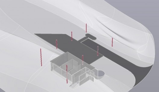Pavimento térreo: platô de acesso e terraço definido pela cobertura do subsolo e pela pavimentação sobre o terreno.