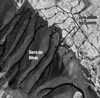 The metropolitan area of Monterrey is surrounded by the Sierra Madre Oriental and shows almost vertical cuts in the mountains in the southern zone and part of the east and west (see 018), which produce high slopes on very little permeable rocky soils whose geological features which make them prone to capture and concentrate rain water in normally dry riverbeds, directing it toward the lowest parts of the city and thereby causing flooding.