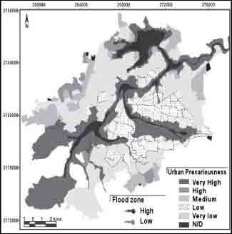 The concept of risk refers to the probability of an urban center (people, buildings, infrastructure networks) to suffer damage or harm. In order for there to be a risk, there needs to be both a threat (or danger) and a population that is vulnerable to its impacts; "Vulnerability" being the propensity of a population, its buildings, its systems and networks, or the surrounding nature, to suffer damage. The risk is therefore a latent condition or potential, and its degree depends on the probable intensity of the threat and the existing levels of vulnerability. Consequently, threat and risk should not be considered as synonymous, for the degree of risk always depends on the magnitude of both the threat and the vulnerability (1). Threats may be identified as: natural hazards caused by the proximity of seas or lakes or socio-natural threats when events set “natural” limits to the development of cities (like floods).