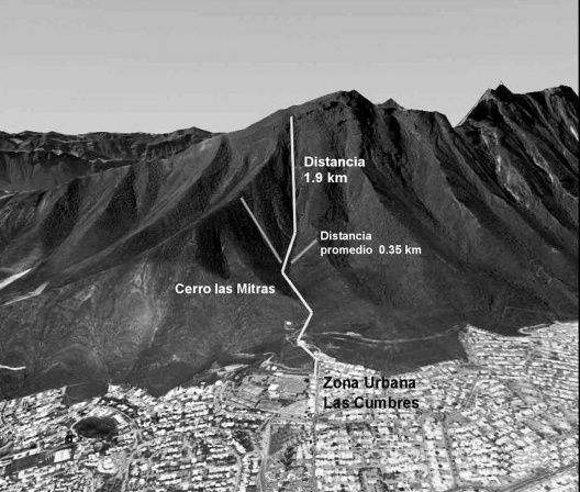 As the metropolitan area of Monterrey has increased its population to almost 4 million inhabitants (2010), a large part of the high- and middle-income sectors have been settling on the hilly sides of the sierra, which afford better weather and great views over the city and the mountain range, compared to the northern plateau, where the industries and working-class neighborhoods are located. And in the absence of a more strict implementation of the Urban Development Plan of the Municipality, a large part of the "dry" riverbeds and the surrounding slopes of the sierra have gradually been urbanized. However, the geological substrate of these rocky massifs shows weathering, erosion, surface fractures and roughness with a large amount of cracks. Because it is a mountain range with a 600 m high, nearly vertical rocky wall, multiple small riverbeds remain "dry" during much of the year.