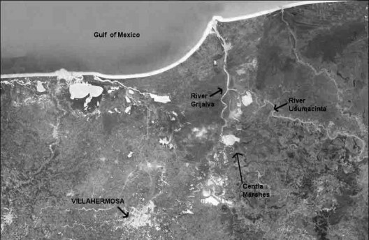 Tabasco has a surface area of 24 thousand 661 square kilometers, 1.2 percent of the national total; and a population of just over 2 million, representing 1.9 percent of the overall population of the country. The flooding of Tabasco in 2007 is considered as one of the most serious natural disasters of Mexico in the last 5 decades, because it is located on a vast plain that is crossed by two of the mightiest rivers of Mexico, the Usumacinta River and the Grijalva. Both rivers come together in one only before its mouth. For this reason it turns into a huge swamp or marsh, known as the Centla Marshes , of enormous biological diversity (Figs.13)