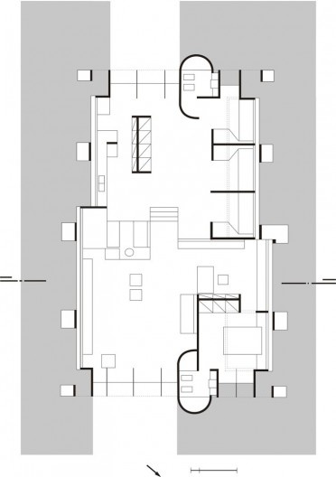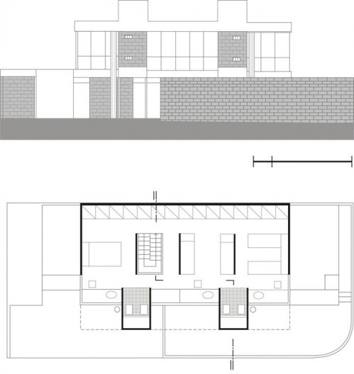 Esta casa foi desenhada por Flavio Império dois anos depois de sua participação na oficina de Joaquim Guedes, que experimentou deste tipo de cobertura em projeto residencial um ano antes.