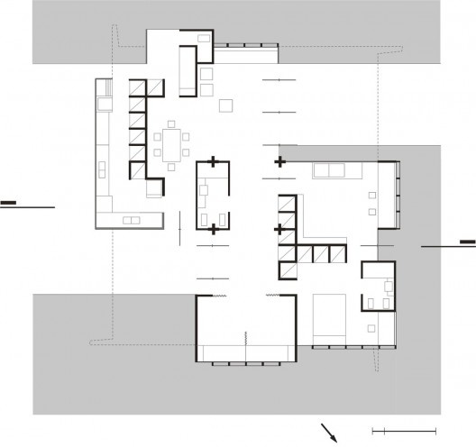 A casa semi-enterrada em relação ao terreno preservou a harmonia da paisagem natural. Uma lição corbusiana presente na formação do movimento moderno no Brasil e também aproveitada pela vertente crítica.