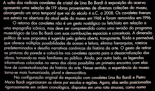 ANELLI, Renato, Origens e atualidade da transparência no Masp. In PEDROSA, Adriano e PROENÇA, Luiza. Concreto e cristal: o acervo do Masp nos cavaletes de Lina Bo Bardi. São Paulo, Masp, Cobogó, 2015.