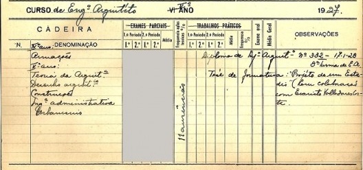 Art. 52º – $ único- No curso de Architectura será obrigatória a frequência às preleções, às aulas práticas, aos trabalhos escolares, ás excursões e aos demais exercícios (34).
