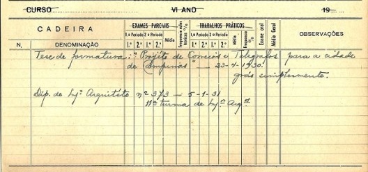 Fato é que, somadas a autonomia do Curso de Arquitetura na ENBA e a obrigação de “observar regime didático e escolar idêntico ao de instituto oficial congênere” (21), a última turma do Curso de engenheiro-arquiteto da EEM é identificada na Ficha Escolar aberta em 1930 (22). A exemplo da Fig. 2, o verso das Fichas Escolares estampa a titulação de “engenheiro-arquiteto” concedida ao final do curso.