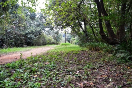 Um coreto, o biotério, a casa de máquinas, cocheiras. Ao longo do caminho que leva a essas construções, touceiras de inhames, guaimbês e aves-do-paraíso guardam as marcas do tempo em que os canteiros eram tratados. Logo além, um bosque denso encerra um barranco que sobe íngreme, com os arbustos rentes à rua. Do zelo, enquanto recantos aprazíveis, à rusticidade, quando já não mais cultivados, tais canteiros, contudo, resistem no tempo em sua condição de jardim. Imiscuídas nos cipós pendentes das árvores que as protegem, encarapitadas, displicentes, ao redor dos troncos, as plantas cultivadas que ornavam as beiradas da mata misturam-se a ela, invadem seus domínios e são por ela invadidas. Espraiam-se, uma vez desprovidas dos cuidados que as conduziam, à condição de um único jardim capaz de abarcar a densidade do bosque, a rua e o capim que a permeia, e transborda para os canteiros ajardinados.