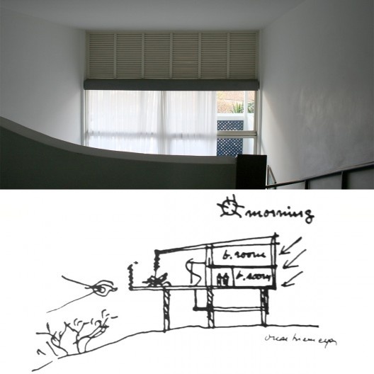 As casas unifamiliares, projetadas com ‘semiplanos’, eram admiradas precisamente pelo efeito visual de um continuum espacial. Uma publicação de 1955 evidencia este efeito sobre o qual se aponta que “a escada, ao descer dos dormitórios, participa do arranjo da sala de estar, [...] os três semiplanos da casa são ligados sem necessidade de corredores” (18). Nas fotografias se observa o uso de guarda-corpo em vido no mezanino, que podia manter a interconectividade dos olhares.
