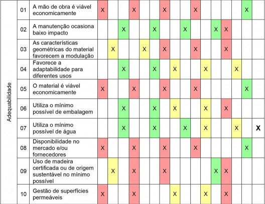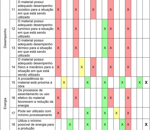 Destaca-se, ainda, que a lista de critérios disponibilizada, contém informações básicas sobre os principais itens que contribuem para a compreensão da sustentabilidade dos materiais de construção, podendo ser consideradas também diretrizes orientativas para uma seleção pautada neste contexto. Tais critérios não devem dificultar o processo de projeto, e sim enriquecer e fomentar a maior criatividade, ao abrir novos questionamentos e propor novas alternativas.