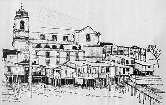 O remanejamento de ocupações do local da intervenção, segundo o próprio plano, era entendido como um ato de ordenamento e organização urbana e fora aplicado visando o resgate e a preservação da "área que mais identifica Belém como metrópole da Amazônia" (23), aspecto que revela uma busca de afirmação de uma identidade cultural local com seus matizes estéticos e ideológicos. Além da indenização e remoção das habitações irregulares da área, o projeto para aquela porção visava a reconstituição dos barracões comerciais adjacentes ao Mercado e ao Porto do Sal, o que estimularia e dinamizaria o comércio varejista existente (24). Curiosamente, os desenhos para a área do Conjunto do Carmo e Rua Siqueira Mendes, que sintetizam graficamente estes ideais, foram desenvolvidos a partir de fotografias da década de 1973 de autoria de Roberto Serra Freire.