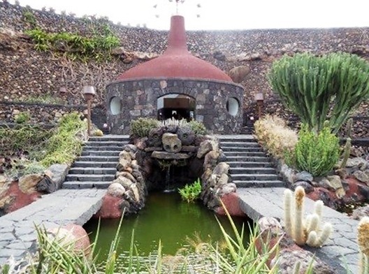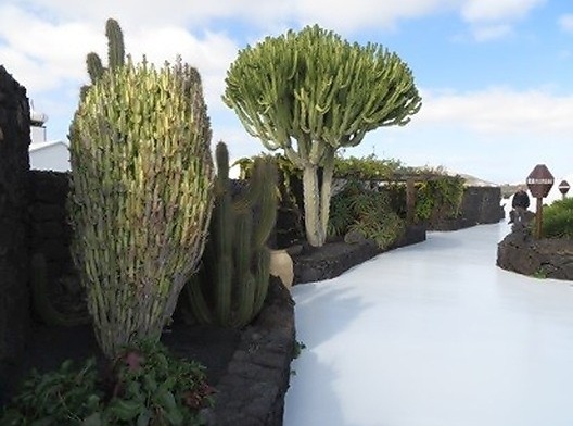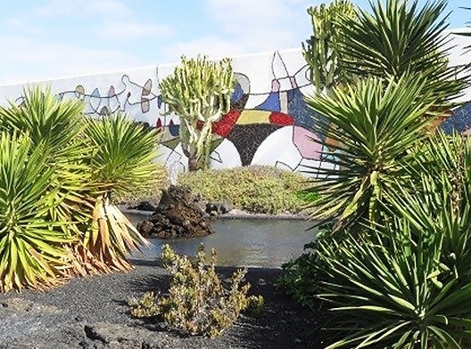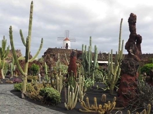 El Jardín de Cactus, construído em 1990, é um dos últimos centros projetados por César Manrique. Constitui exemplo magnífico de sua proposta artística através da manutenção do vínculo, indissolúvel para o artista, entre arte, natureza, cultura e entorno local. Situado na localidade de Guatiza, município de Teguise, em uma paisagem marcada pelo cultivo da cochonilha, o conjunto se implanta por sobre um terreno degradado por operações de mineração de areia, recriando a topografia e condicionando a visitação. Nos 5.000m2do centro são plantadas mais de 1.100 espécies diversas de cactos e suculentas que, associados aos caminhos, construções, movimentações topográficas e um moinho recuperado criam rica e inusitada paisagem.